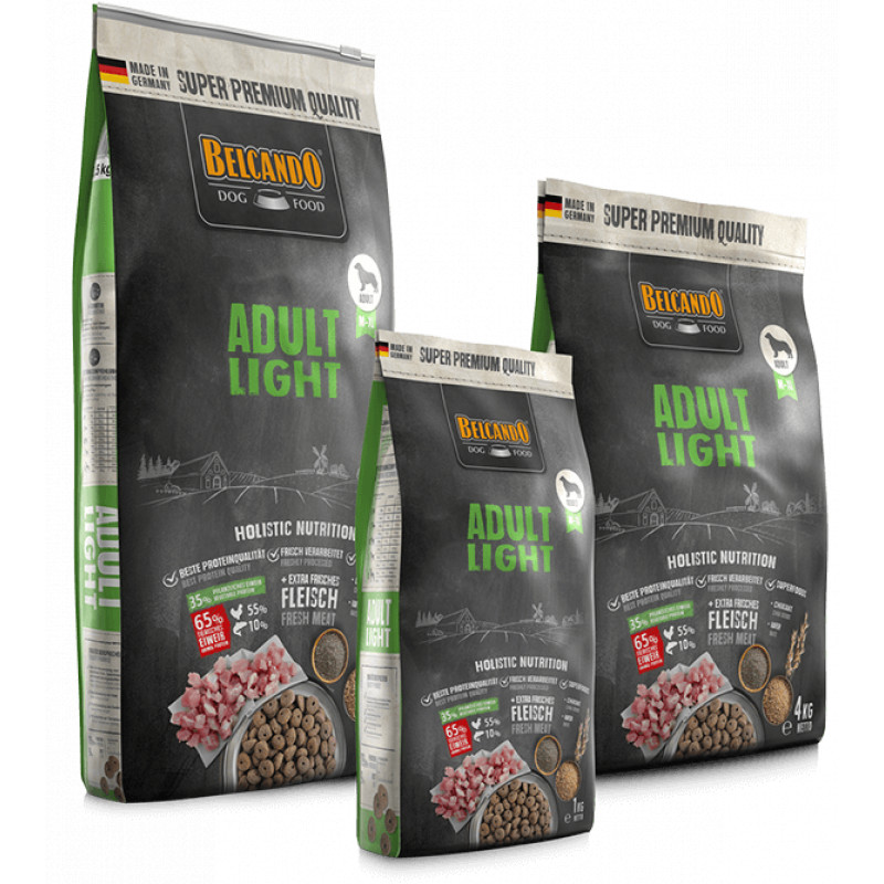 Pro pejsky s nadváhou je ideální krmivo Belcando Adult Light. Vysoký podíl vlákniny se stará o snižování nadváhy, krmivo má navíc pečlivě namíchané vyvážené složení s nižším obsahem bílkovin a tuků.