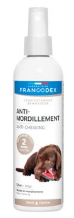 Vlastnosti: Sprej proti okusování pro psy a štěňata od Francodex Santé Animal zabrání tomu, aby váš pes okusoval nábytek a předměty, které chcete chránit.