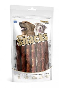 Měkká, přírodní masová pochoutka pro psy - tyčka z hovězí kůže obtočená plátkem lahodného kachního masa. Slouží jako odměna při hře, výcviku nebo jako doplněk stravy při cestách.
