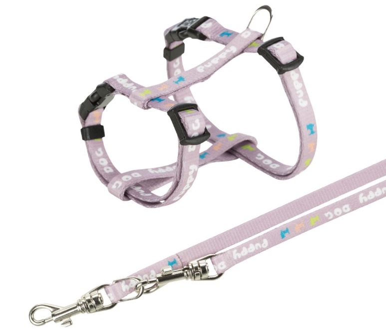 TRIXIE JUNIOR postroj s vodítkem pro štěňata, M-L: 27-45 cm, 2 m, světlá lila
