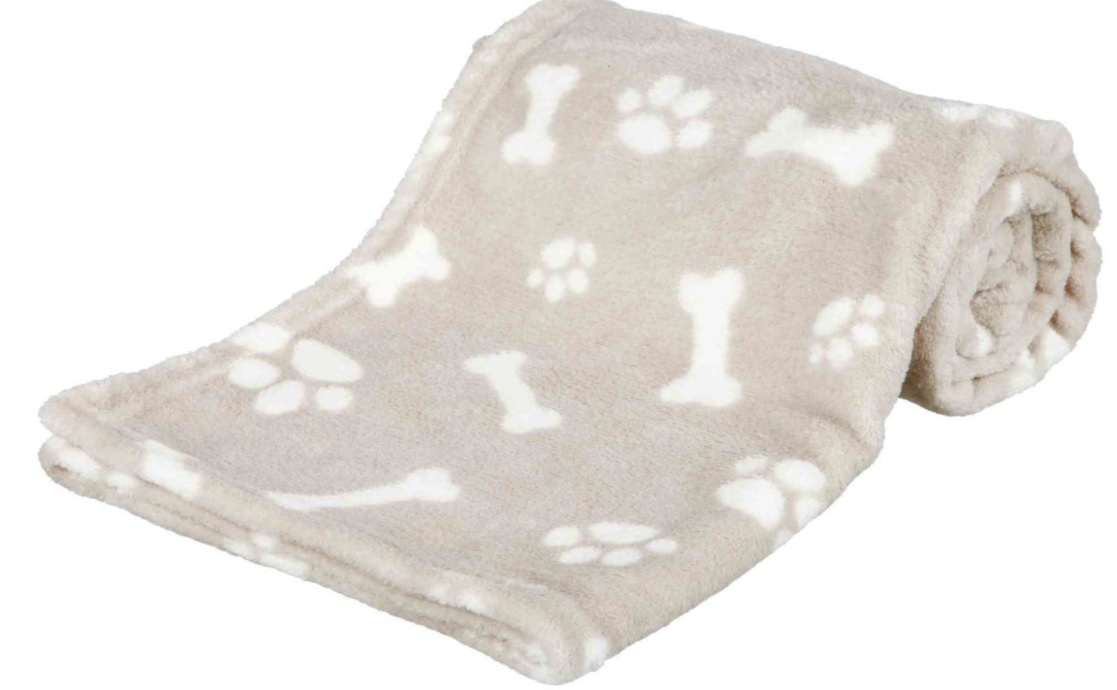 - TRIXIE Plyšová deka KENNY, béžová s kostičkami a packami 75 x 50cm