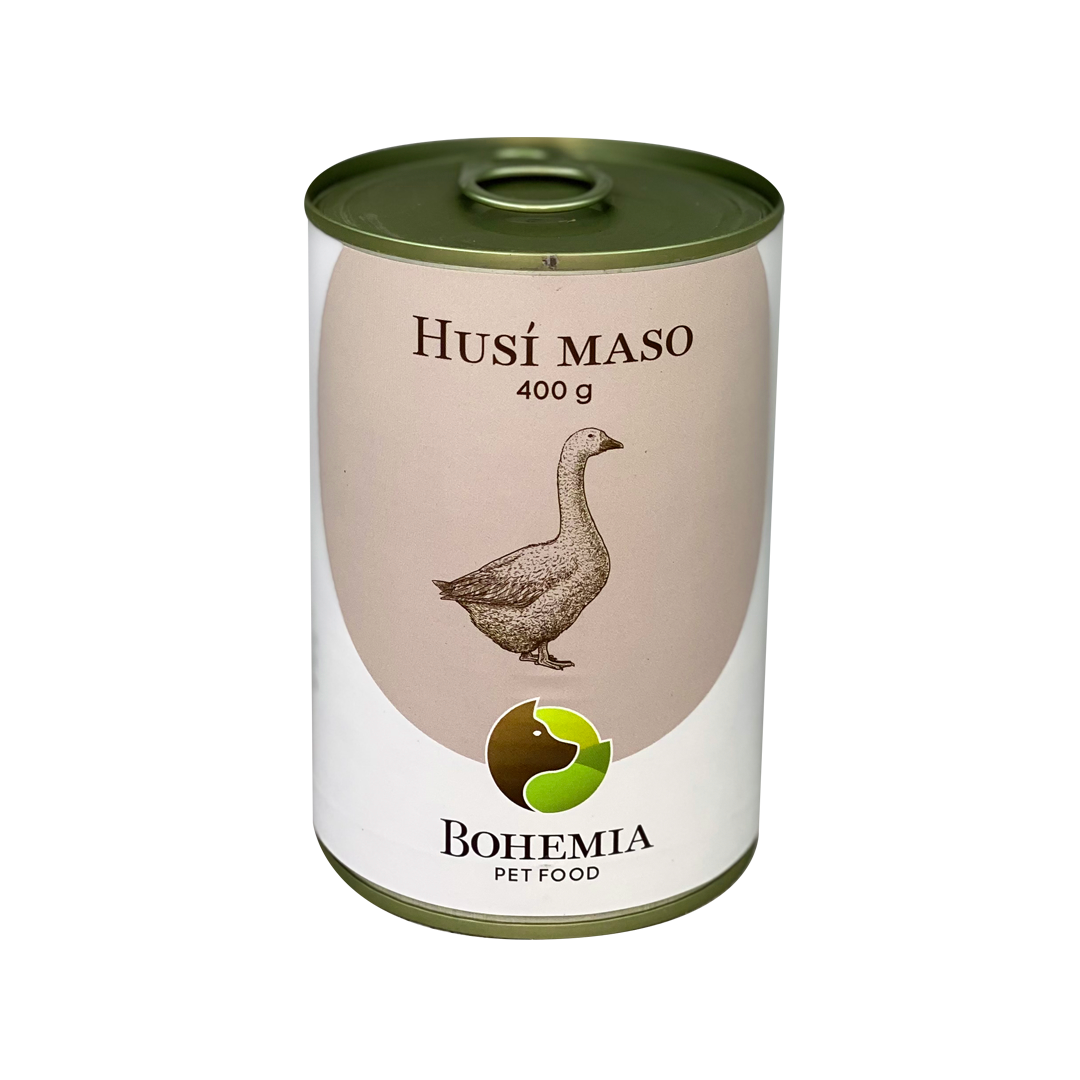 Bohemia Husí maso ve vlastní šťávě je prémiová konzerva pro psy s vysokým obsahem masa, která splňuje standard double protein – obsahuje dva kvalitní zdroje bílkovin: slepičí maso z plemen Ross a Cobb a husí maso. Výrobek je doplněn pouze o zeleninový vývar a lněný olej lisovaný za studena, což zajišťuje optimální nutriční hodnotu bez zbytečných přísad.